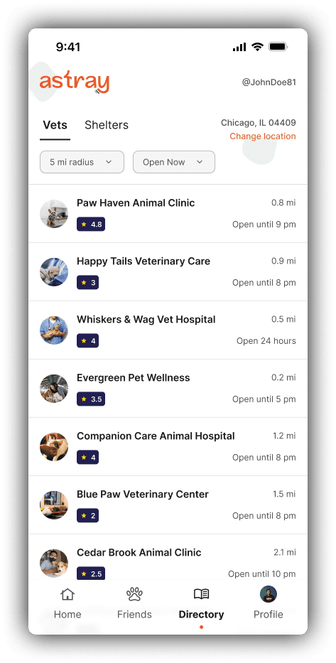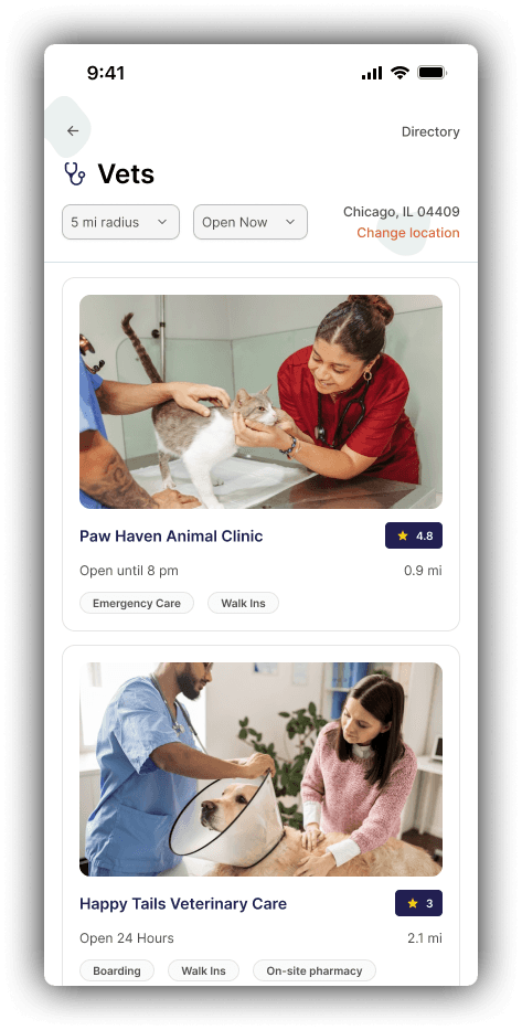 Filter by Vets, Shelters, Lost Pets, Found Pets
