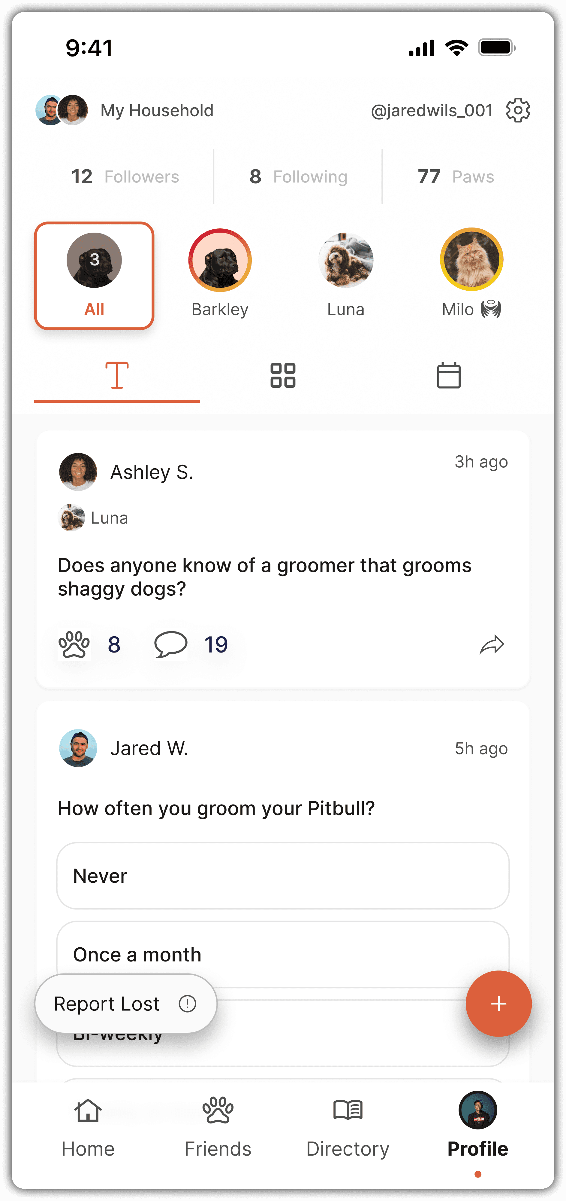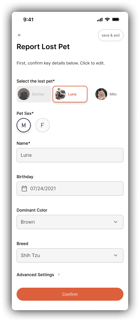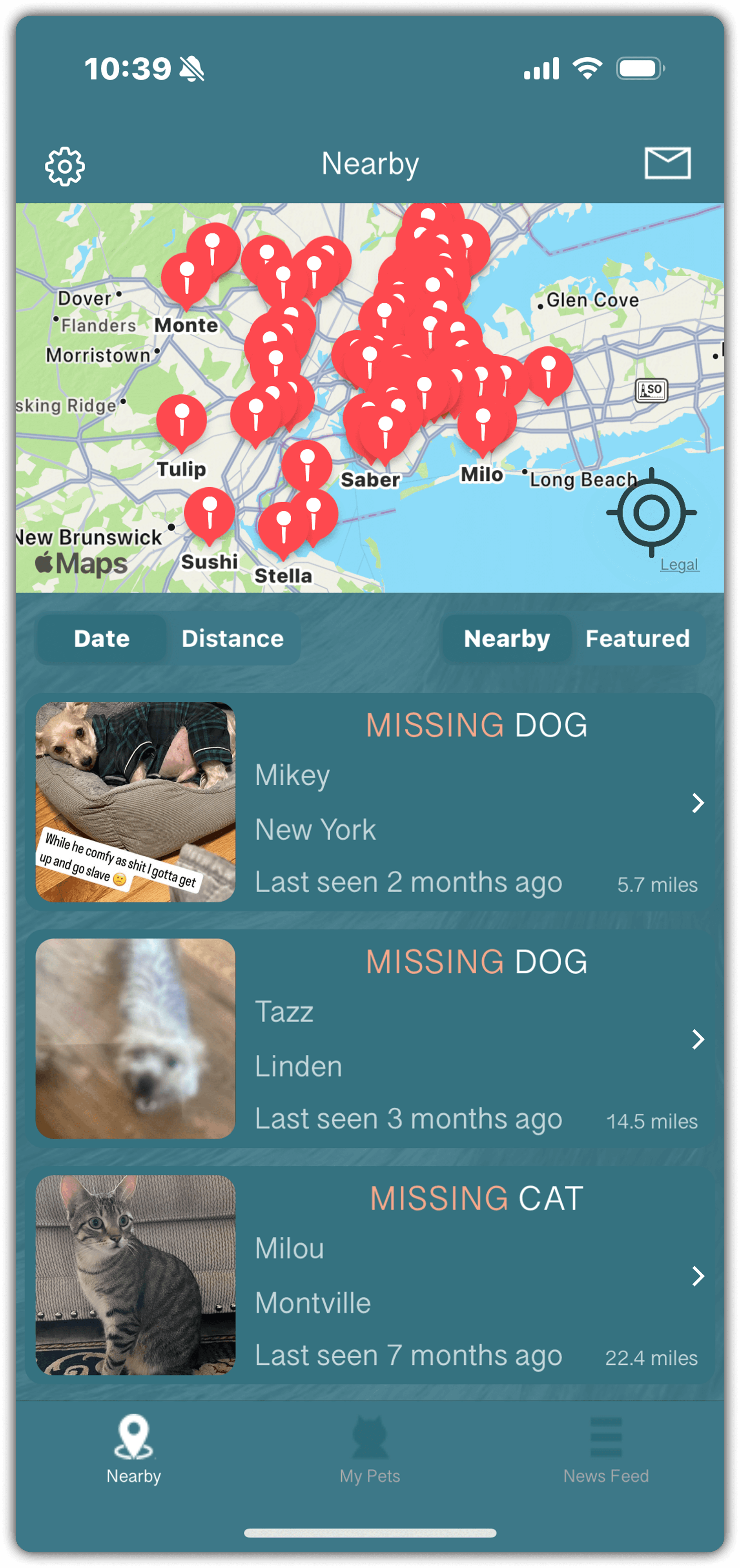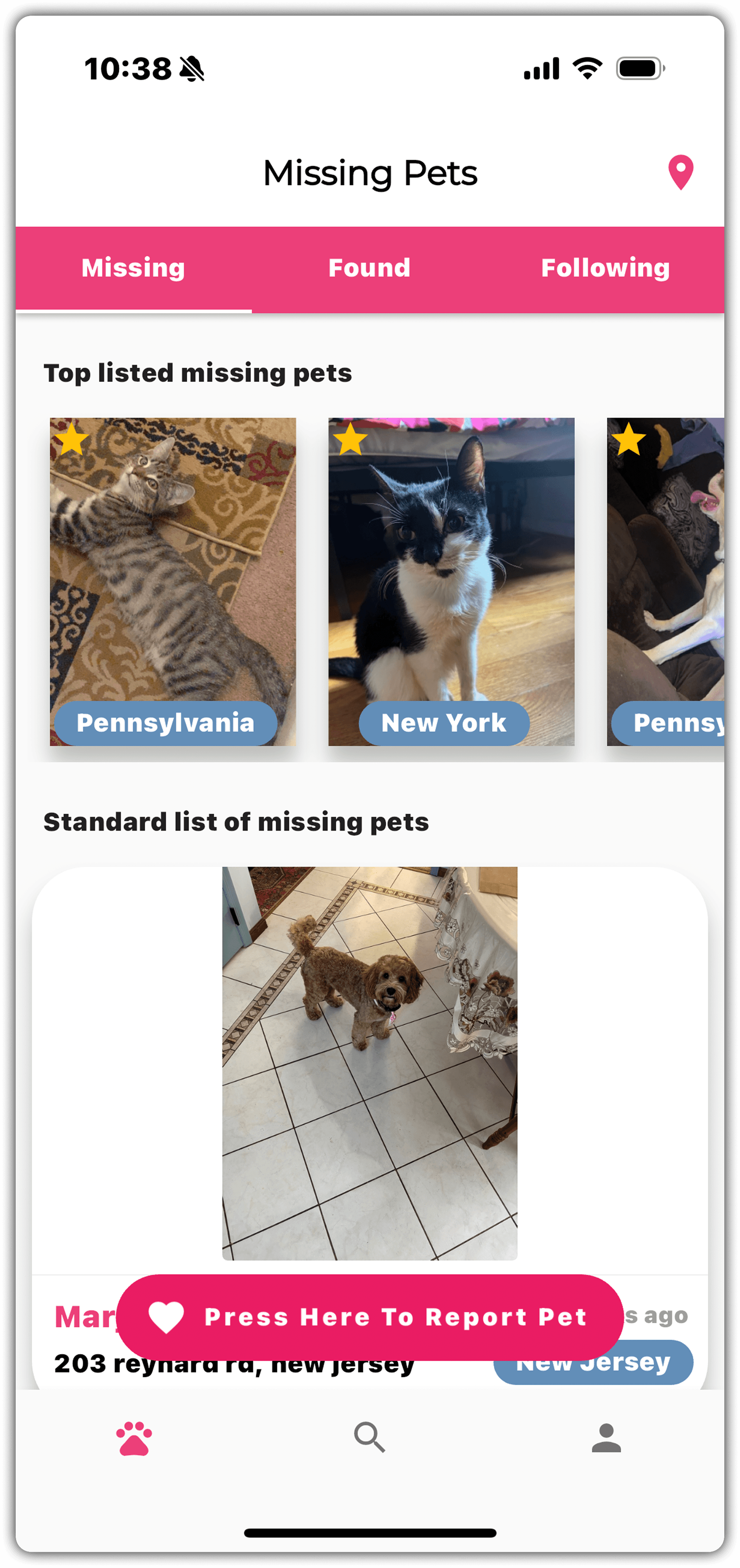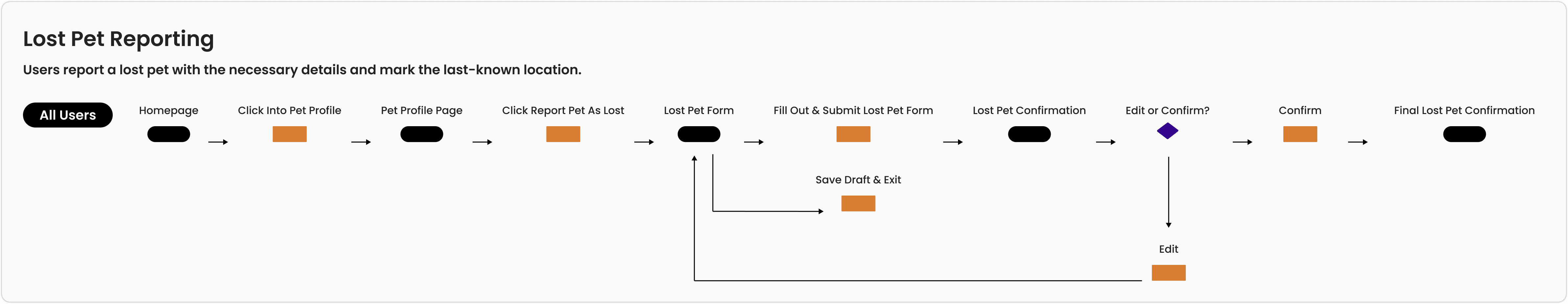 I started the project with light competitor research, identifying gaps in other lost pet apps, particularly their lack of long-term engagement or community-building features.