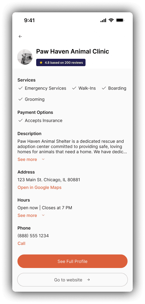 Hybrid model. Some data pulled via public scraping, but shelters and vets could also create and manage their own verified profiles.