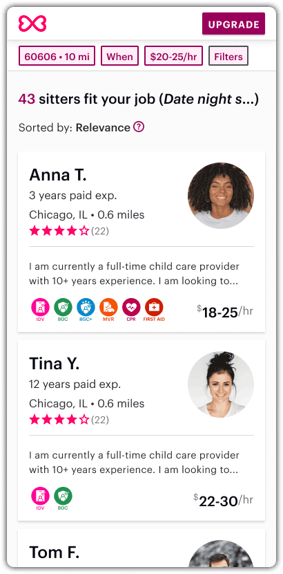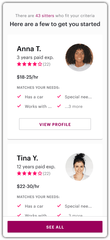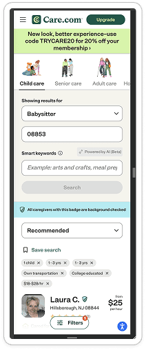 Care.com | Filtered Sitter list
