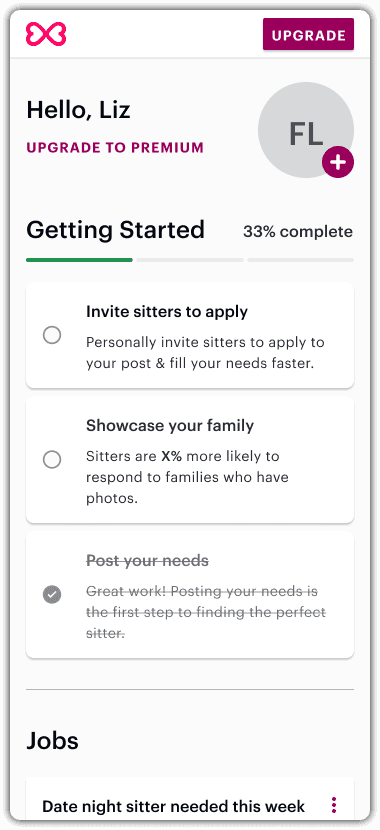This was a net new addition. Before this families had no anchor after posting, engagement would drop because there was nothing telling them what to do next. The checklist gave them clear productive steps including inviting a sitter as a priority action.