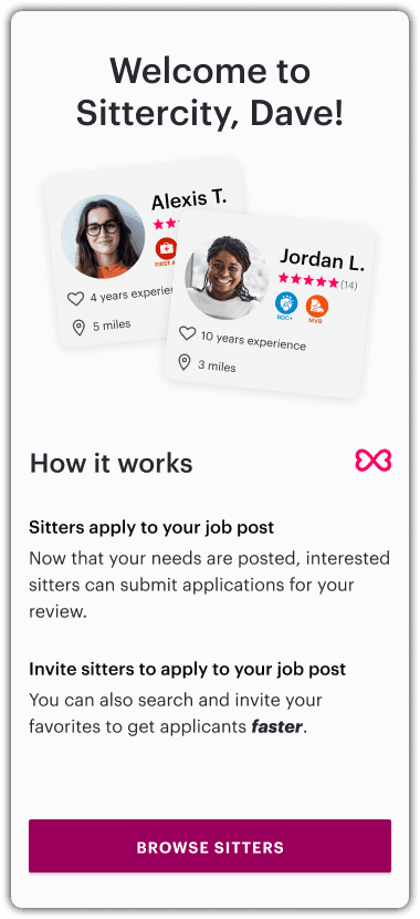 Instead of landing families on a generic browse page I dropped them directly onto a sitter search page pre-filtered by their job requirements. Less friction, more relevance, faster path to action.