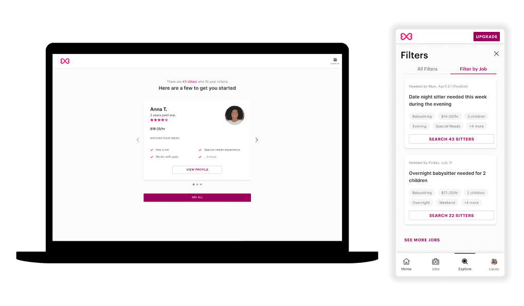 Senior Product Designer. Two person design team. I owned the sitter and match side of the product. This project touched both sides.