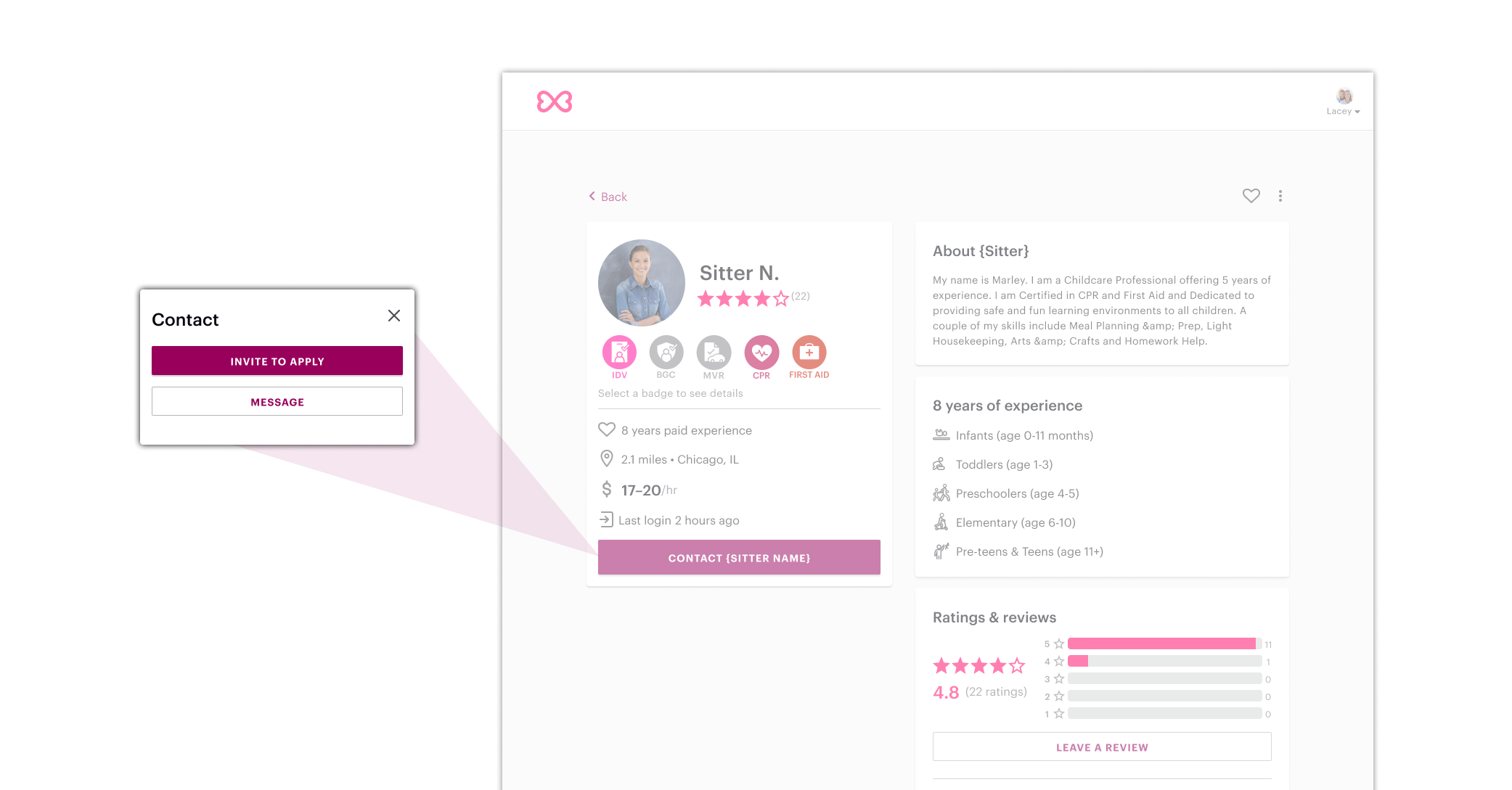 Product analysis showed that families who invite sitters to apply to their posted job vs those who wait for sitters to apply on their own are 2x more likely to convert to a premium subscription